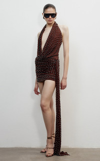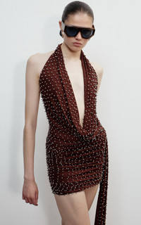 PRODUCT DETAILS - Slim fit, sleeveless, plunging cowl neck - Zipper fastening on back - Composition: 97% Viscose, 3% Elastane - Color: Brown - Dry Clean Only - Pre Fall '25