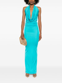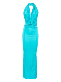Angel dress Highlights - Aqua blue - Rear hook and eye fastening - Cowl neck - Open back - Sleeveless Imported Composition Viscose 97%, Elastane 3% SIZE & FIT Model measurements Height 5 ft 11 in(1.8 m) Bust/Chest 32.67 in(83 cm) Hips 35.82 in(91 cm) Waist 25.98 in(66 cm) FittingInformation Designed for a close fit throughout Made from a midweight stretch fabric, this piece offers elasticity and flexibility when worn Washing instructions Dry Clean Only