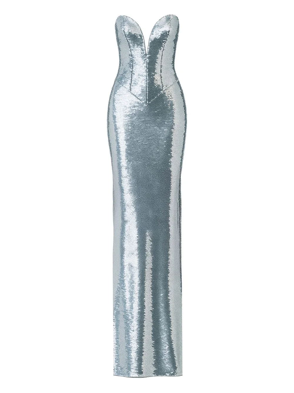 Azzurra sequin-embellishment maxi dress Highlights - Silver-tone - Sequin embellishment - Strapless - Heart neck - Zip fastening Imported Composition Polyester 100% Washing instructions Read Manufacturer Guidelines