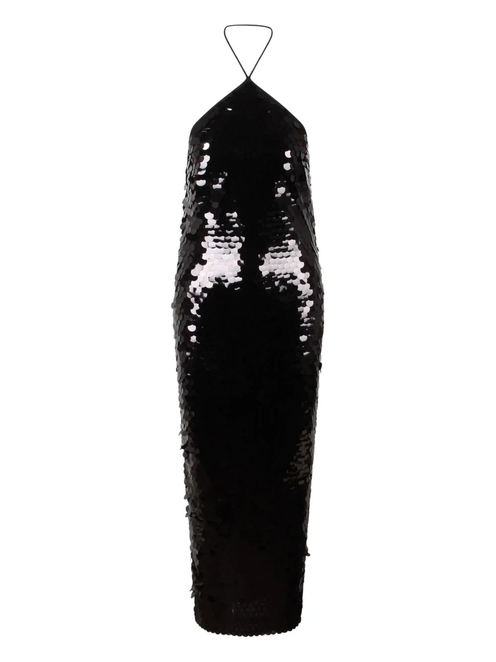 Blanca dress Highlights - Black - Concealed rear zip fastening - Halterneck tie fastening - Rear slit - Paillette detailing Imported Composition Polyester 100% Washing instructions Read Manufacturer Guidelines