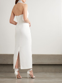 The New Arrivals Ilkyaz Ozel's bridalwear marries glamour and sophistication, so this 'Hemingway' gown is perfect for the chic, contemporary bride. It's made from white cady with a shimmering crystal-embellished halter neckline and has a tapered waist with side pockets - perfect for storing speech notes or your something blue. Size & Fit - Fits true to size, take your normal size - Designed for a close fit - Mid-weight, non-stretchy fabric - Model is 177cm/ 5'10" and is wearing a FR 36 Model measurements: - Bust: 85cm/ 33” - Waist: 66cm/ 26” - Hip: 92cm/ 36” Details & Care - White cady - Concealed hook and zip fastening at back - 100% polyester - Dry clean - Designer color: Silver Bellini