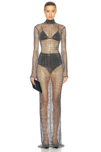 Details - 100% polyester - Made in Turkey - Dry clean only - Unlined - Exposed back zipper closure - Mockneck styling - Midweight crystal embellished fabric - Garment is intentionally sheer, undergarments will show through. - Please note undergarment not included - Our Style No. NALF-WD86 - Manufacturer Style No. NA00200380598