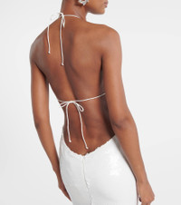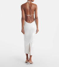 Turn heads at your next event with outstanding designs from The New Arrivals Ilkyaz Ozel, like the Cindy midi dress. Entirely adorned with shimmering sequins, this style features a halter neckline and an alluring open back. Product Details - Material: 100% polyester - Care instructions: dry clean - Made in Turkey - Designer color name: Tubereuse - Item color: white - Closure: zipped back - Self-tie neck and back - Short vent - Item number: P01060466 Size & Fit - True to size - Low back - Cinched waist - Non-stretchy fabric - slit length 32cm-12.5" - The model seen in the picture is 178cm-5'10" and wearing a size FR 36