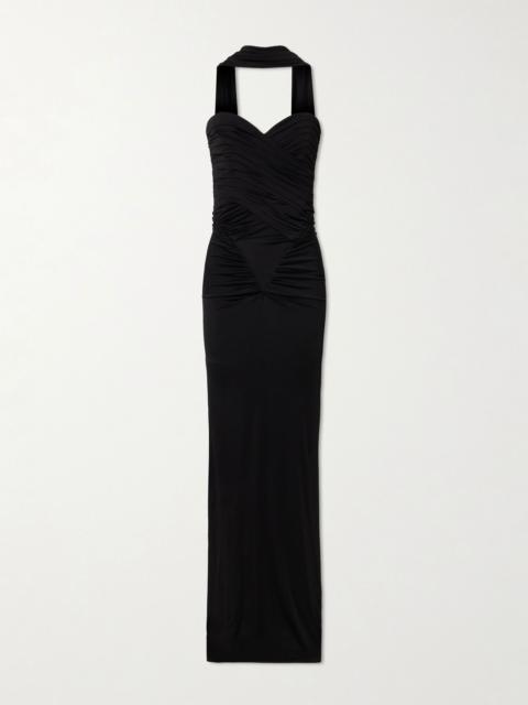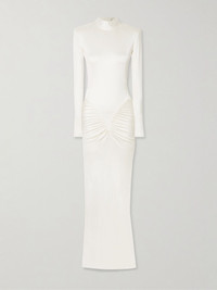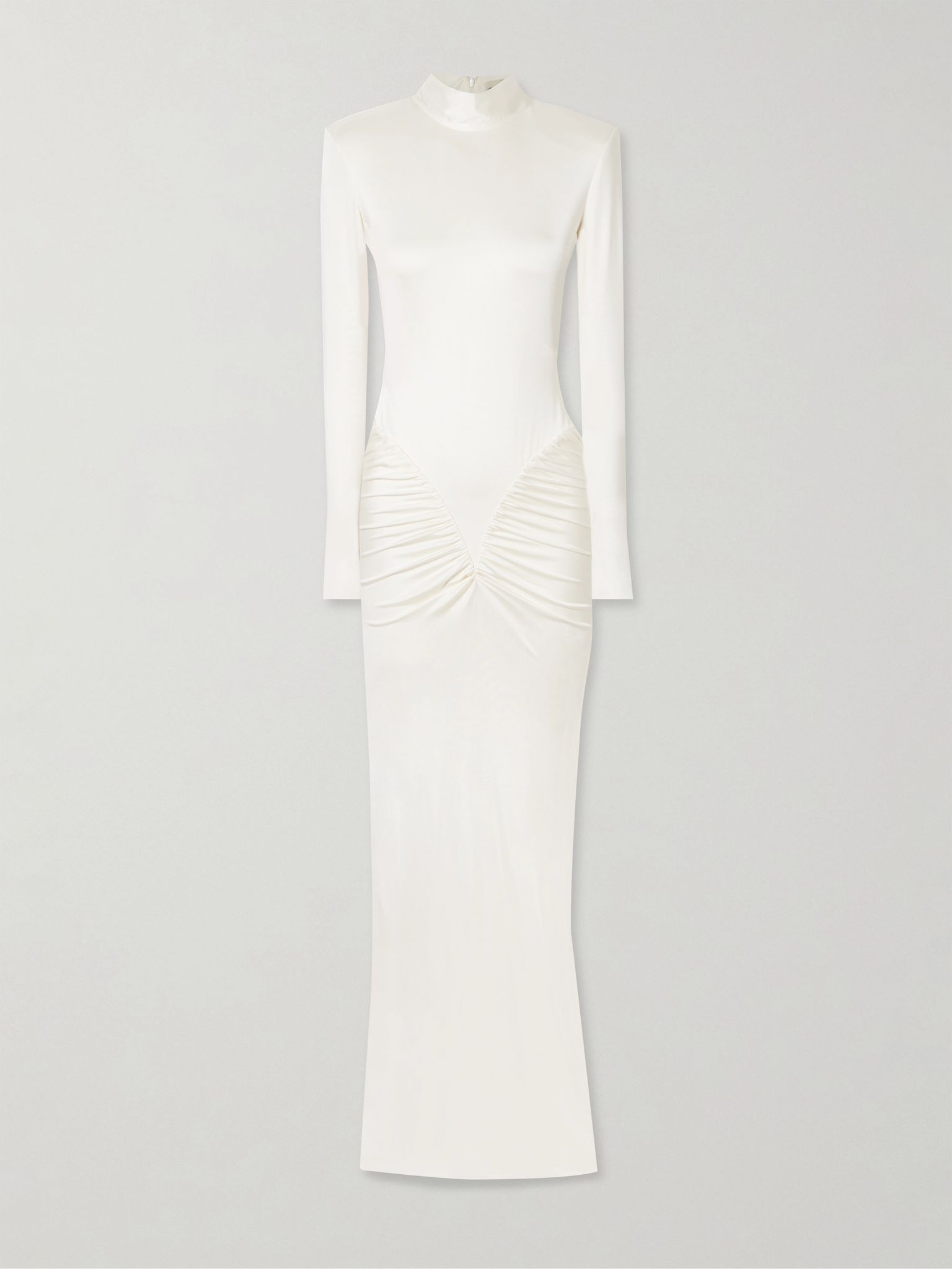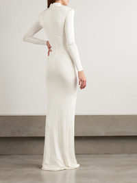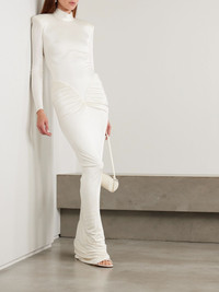 Graceful yet striking, The New Arrivals Ilkyaz Ozel takes cues from classical sculptures when designing. With structured shoulders for a column stature, this 'Darja' gown is draped from the slinkiest satin-jersey, which fans out at the hips with artful gathering. Details & Care - Ivory satin-jersey - Concealed hook and zip fastening at back - 97% viscose, 3% elastane - Dry clean - Designer color: Casablanca Lily