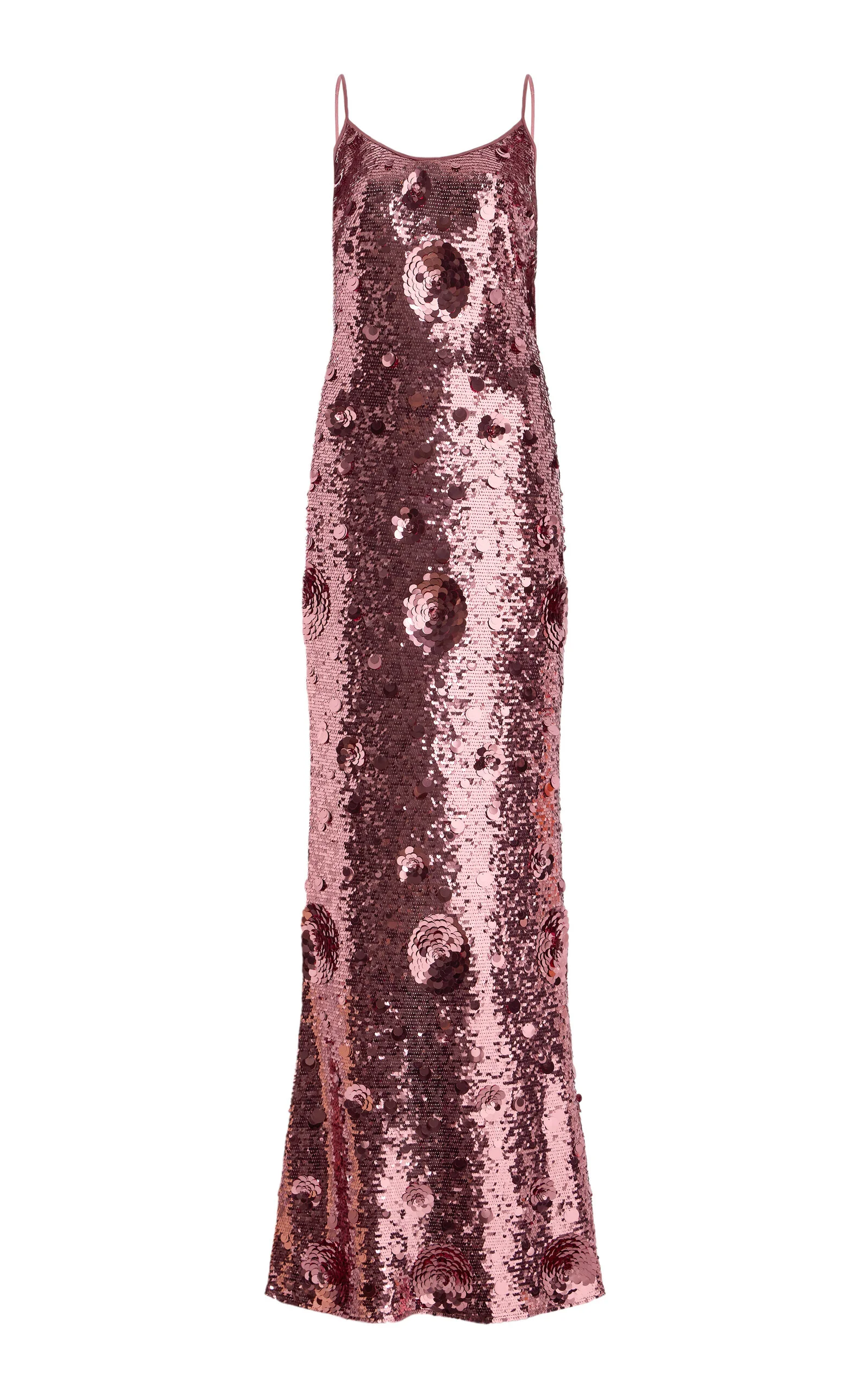 Turkish cool girl İlkyaz Ozel returns with more scintillating party pieces to love. True to form, this season radiates a hedonistic edge across her high-shine signatures that capture a retro glamour. The ‘Isis’ is a fitted slip dress with a scooped neckline and spaghetti straps. This version is made from a fully sequinned fabric with floral applique dotted throughout. To accommodate the length, wear with high heels. PRODUCT DETAILS - Fall/Winter ‘25 - Concealed zip fastening - Composition: 100% polyester - Dry clean - Designer Color: Fleur De Fleurs - Made in Turkey