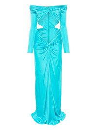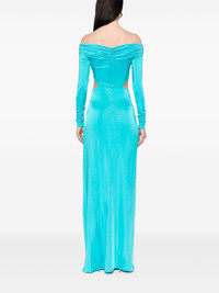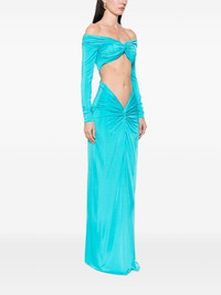 Jasmine maxi dress Highlights - Aqua blue - Concealed rear zip fastening - Cut-out detailing - Long sleeves - Gathered detailing Imported Composition Viscose 97%, Elastane 3% SIZE & FIT Model measurements Height 5 ft 10 in(1.78 m) Bust/Chest 33.46 in(85 cm) Hips 36.22 in(92 cm) Waist 23.22 in(59 cm) FittingInformation Designed for a close fit throughout Made from a midweight stretch fabric, this piece offers elasticity and flexibility when worn Washing instructions Dry Clean Only