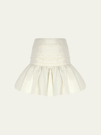 The New Arrivals by Ilkyaz Ozel "Lina" ruched mini skirt complete with voluminous dropped hem High rise Hem falls above the knee Invisible back zipper Silk Lining: Polyester Dry clean Imported Online Inquiries: BGS21_T6KJK| Store Inquiries: #4997309