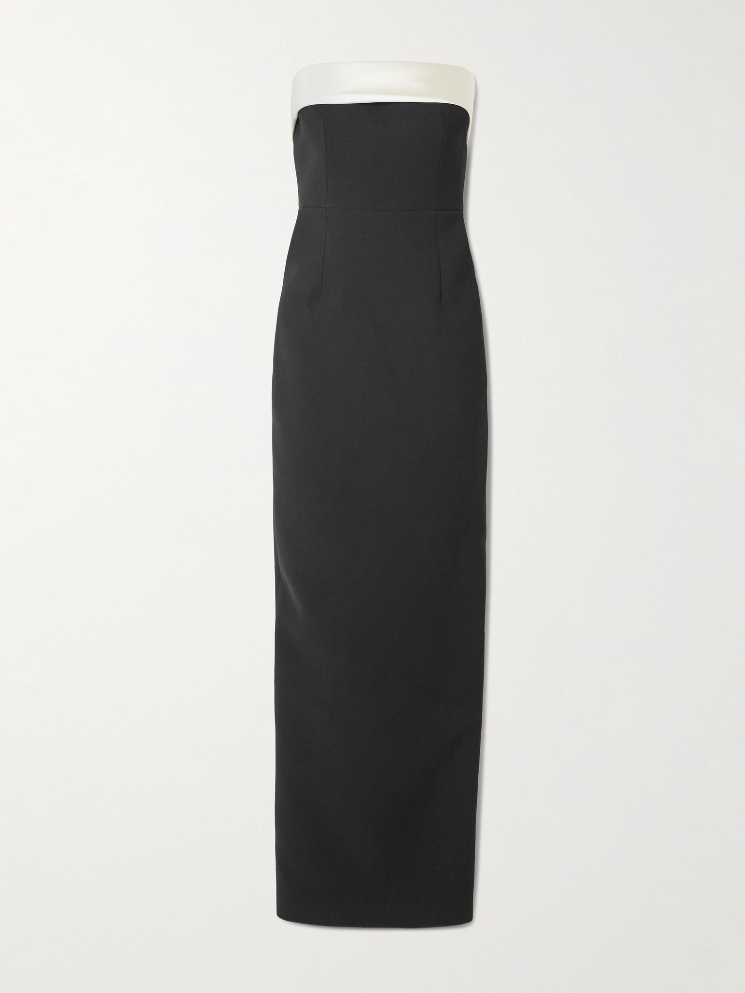 We could imagine The New Arrivals Ilkyaz Ozel's 'Rhea' dress on a red carpet from almost any decade in recent history. Beautiful in its simplicity, it's made from crepe in a column silhouette, and trimmed with a band of satin across the bust. Size & Fit - Fits true to size, take your normal size - Designed for a close fit - Mid-weight, non-stretchy fabric - Model is 177cm/ 5'11" and is wearing a FR 36 Model measurements: - Bust: 80cm/ 31.5" - Waist: 65cm/ 25.5" - Hip: 89cm/ 35" Details & Care - Black crepe, white satin - Hook and concealed zip fastenings at back - 100% polyester - Fully lined - Dry clean - Designer color: Dark Matter