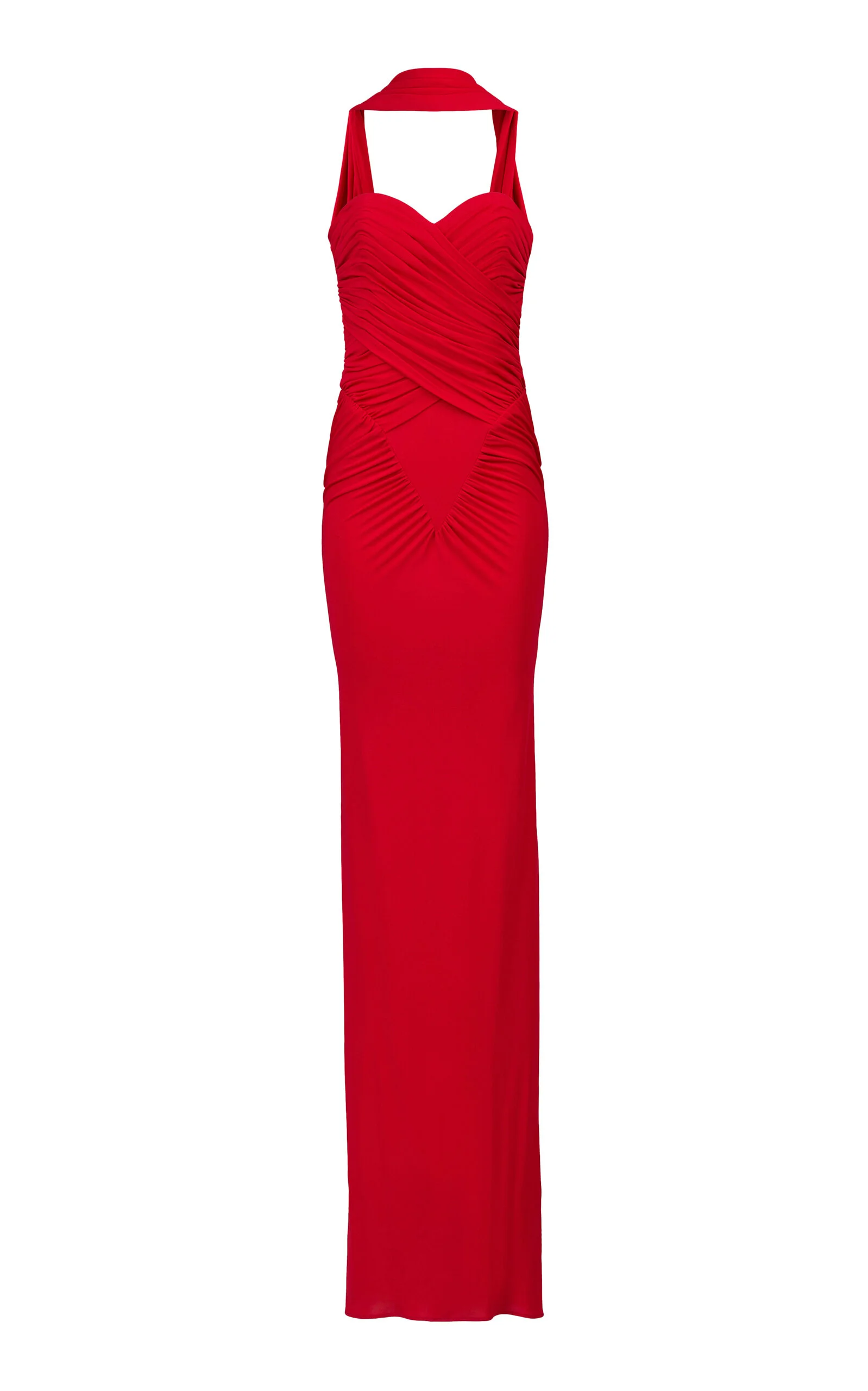 Turkish cool girl İlkyaz Ozel returns with more scintillating party pieces to love. True to form, this season radiates a hedonistic edge across her high-shine signatures that capture a retro glamour. This ‘Samsara’ dress is made from a stretch-material, sewn with contouring gathers across the bodice. It has a reverse halter and sweetheart neckline, as well as a fitted skirt that elongates the frame. Add a pair of heels that support the length. PRODUCT DETAILS - Fall/Winter ‘25 - Concealed zip fastening - Composition: 100% viscose - Dry clean - Designer Color: Firedance - Made in Turkey SIZE & FIT - Our model is wearing a size FR 34 - Model is 5'10" with a 31" bust, 23.5" waist, and 33.5" hip