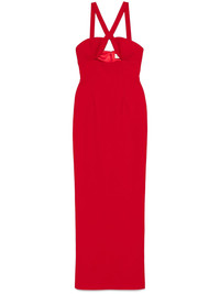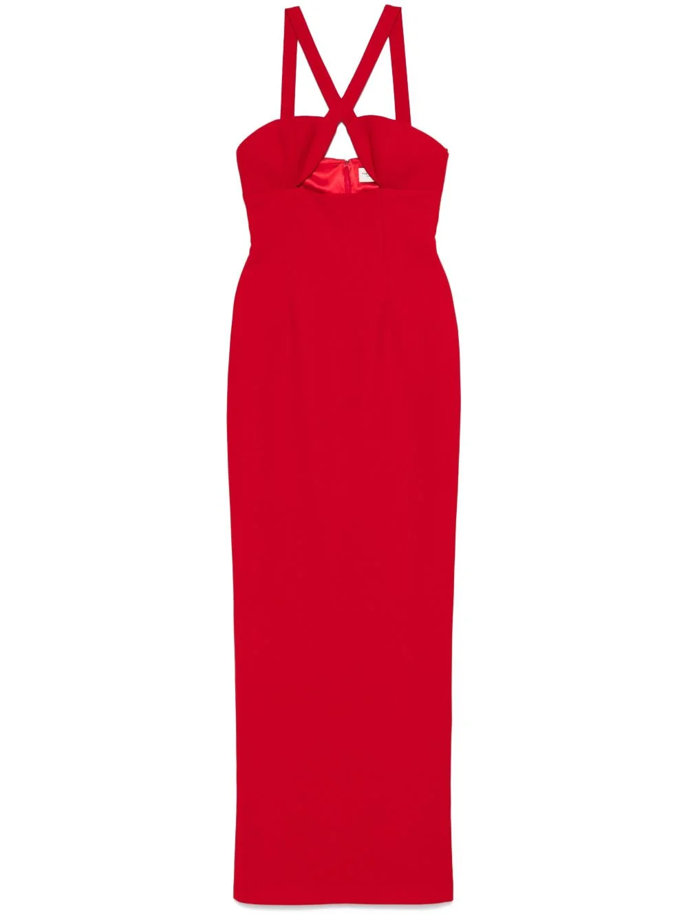 Semiramis gown Highlights - Cardinal red - Concealed rear zip fastening - Crossover strap detail - Cut-out detailing - Rear slit Imported Composition Polyester 100% SIZE & FIT Model measurements Height 5 ft 11 in(1.8 m) Bust/Chest 32.67 in(83 cm) Hips 35.82 in(91 cm) Waist 25.98 in(66 cm) FittingInformation Designed for a close fit throughout The vented hem offers movement at the rear Made from a midweight non-stretch fabric Washing instructions Dry Clean Only