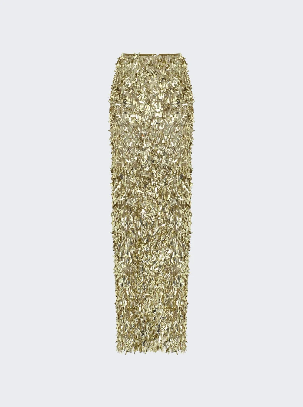 Details - Column skirt, fully embellished with rectangular paillettes - Form fitting, semi-sheer - Model is 5'9"/175cm and is wearing a size FR36 - Material: polyester Brand Style: NA00700460637 Designer/Brand: THE NEW ARRIVALS ILKYAZ OZEL