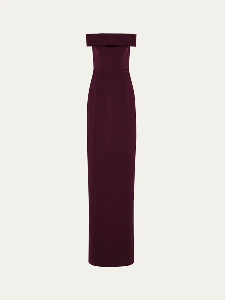 The New Arrivals by Ilkyaz Ozel "Sisu" lustrous satin gown adorned with an oversized bow Approx. 56"L from shoulder to hem Strapless neckline Sleeveless Full length Column silhouette Invisible back zipper Polyester/elastane Lining: Polyester Dry clean Imported Online Inquiries: BGS21_T6KJM| Store Inquiries: #4997311