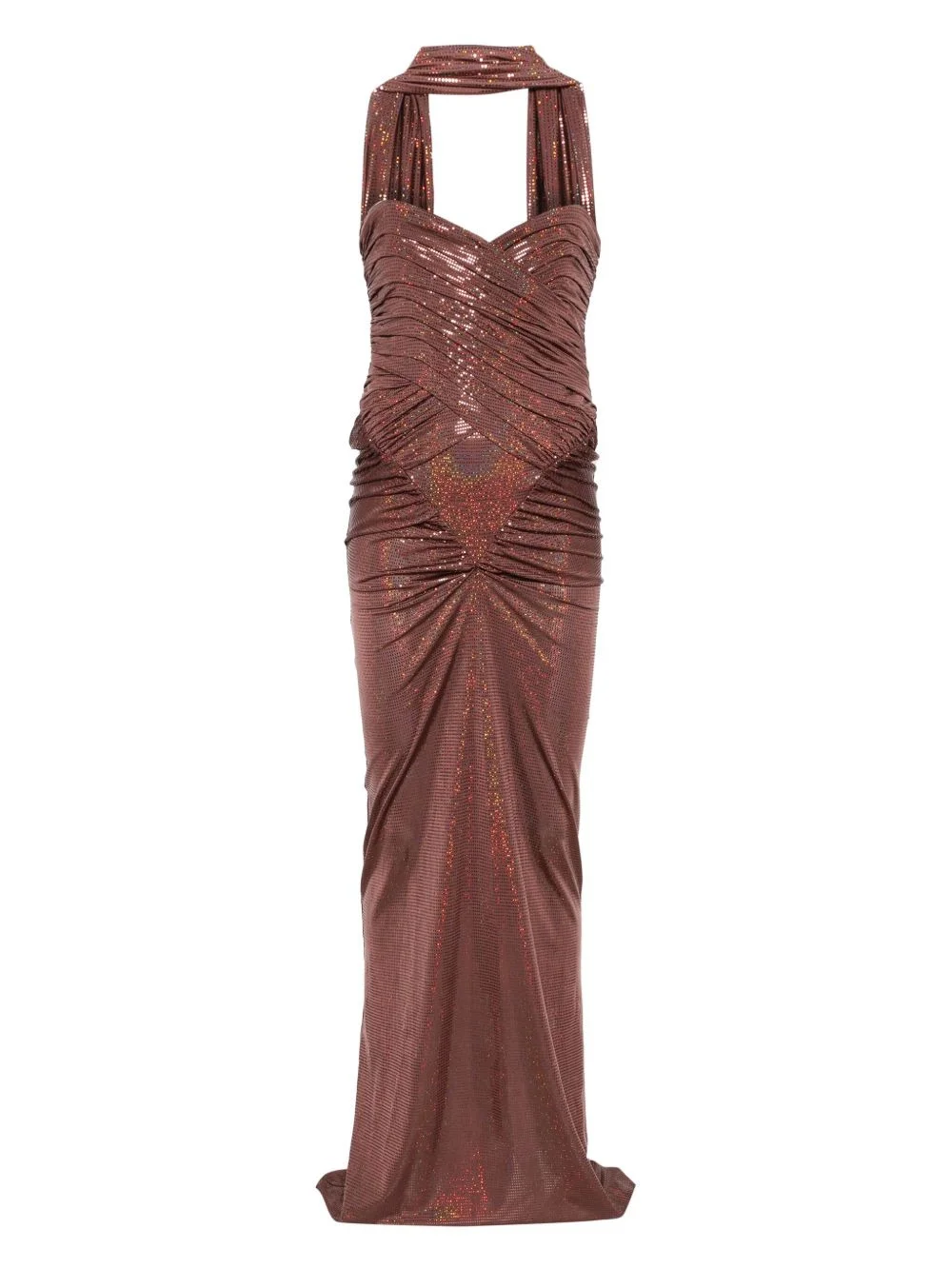sleeveless dress Highlights - Brown - Rear zip fastening - Sweetheart neck - Open back Imported Composition Polyester 97%, Elastane 3% SIZE & FIT Model measurements Height 5 ft 11 in(1.8 m) Bust/Chest 31.49 in(80 cm) Hips 36.61 in(93 cm) Waist 24.4 in(62 cm) FittingInformation Designed for a slim fit that sits just away from the body offering a close yet comfortable fit Made from a midweight non-stretch fabric, this piece offers minimal elasticity when worn Washing instructions Dry Clean Only