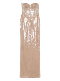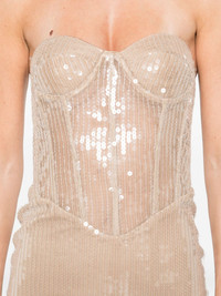 Tara dress Highlights - Beige - Sequin embellishment - Rear slit Imported Composition Polyester 100%, Sequin 100% SIZE & FIT Model measurements Height 5 ft 10 in(1.78 m) Bust/Chest 33.46 in(85 cm) Hips 36.22 in(92 cm) Waist 23.22 in(59 cm) Washing instructions Dry Clean Only