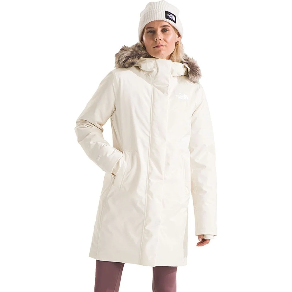 The North Face solves an important problem with its Arctic Down Parka. Down offers the best warmth for the weight—if it stays dry. But most down parkas are not waterproof, putting that down at risk—and us at risk—in cold and wet conditions. Lucky for us, the Arctic Down Parka keeps us toasty with 600-fill down that's protected by a 2-layer waterproof membrane that keeps out rain, sleet, ice, and snow. The parka also places moisture-tolerant synthetic insulation in high-moisture areas to provide a winter outer layer that maintains its loft and insulating capabilities in both wet and dry conditions. Both warm and waterproof, the women's Arctic Parka keeps us toasty in the dead of winter while protecting our investment in a down coat, so we can wear it through many seasons of damp and snowy weather. Details - Waterproof down parka for cold and wet weather - Eco-certified goose down traps in body heat for winter warmth - Heatseeker Eco insulation in side panels tolerates moisture - Waterproof DryVent membrane prevents down from losing its loft - Fully seam sealed + storm flap over zipper to keep us dry - Durable water repellent causes moisture to run off parka - Faux fur trim on hood - Item #TNFZD8P Tech Specs Responsible Collection: Recycled/Repurposed, Responsibly Sourced Material: DryVent (100% recycled polyester), Non-PFC DWR coating Insulation: [torso] 600-fill down (Responsible Down Standard), [side panels] 150g Heatseeker Eco (70% recycled polyester) Fit: regular Length: mid-thigh Center Back Length: 35.75in Hood: fixed Pockets: [external] 2 zippered hand, [internal] 1 zippered chest Claimed Weight: 2lb 13.5oz Activity: casual Manufacturer Warranty: limited lifetime Fur Information: faux fur