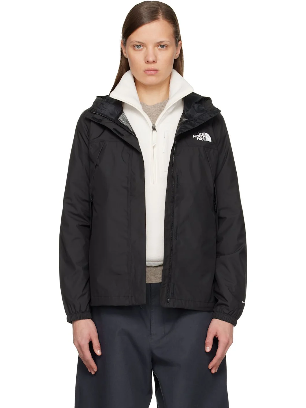 2L DryVent™ recycled polyester ripstop rain jacket. · Water-repellent, non-PFC DWR coating · Wind-resistant · Bungee-style drawstring at hood · Zip closure with velcro placket · Logo printed at chest and back · Zip pockets at front · Bungee-style drawstring at droptail hem · Elasticized cuffs · Full mesh and taffeta lining Supplier color: TNF black Body 1: 100% polyester. Body 2: 100% polyurethane. Lining: 100% polyester. Made in Bangladesh 252802F063032