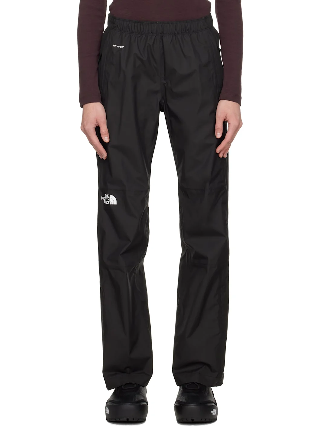 2L DryVent™ recycled polyester ripstop lounge pants. · Water-repellent, non-PFC DWR coating · Wind-resistant · Loose-fit · Concealed drawstring at elasticized waistband · Two-pocket styling · Logo printed at front · Zip vent at cuffs · Adjustable velcro tab at cuffs · Knee-length mesh lining Supplier color: TNF black Body 1: 100% polyester. Body 2: 100% polyurethane. Lining: 100% polyester. Made in Bangladesh 252802F086003