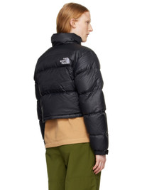 RDS-certified down-filled quilted non-PFC DWR-coated recycled nylon ripstop jacket. Windproof and water-repellent. · Funnel neck · Zip closure · Logo embroidered at chest, cuff, and back · Zip pockets · Concealed bungee-style drawstring at cropped hem · Velcro fastening at elasticized cuffs · Full recycled nylon taffeta lining · VISLON® hardware Supplier color: TNF black/TNF black Fill: 85% down, 15% waterfowl feathers.