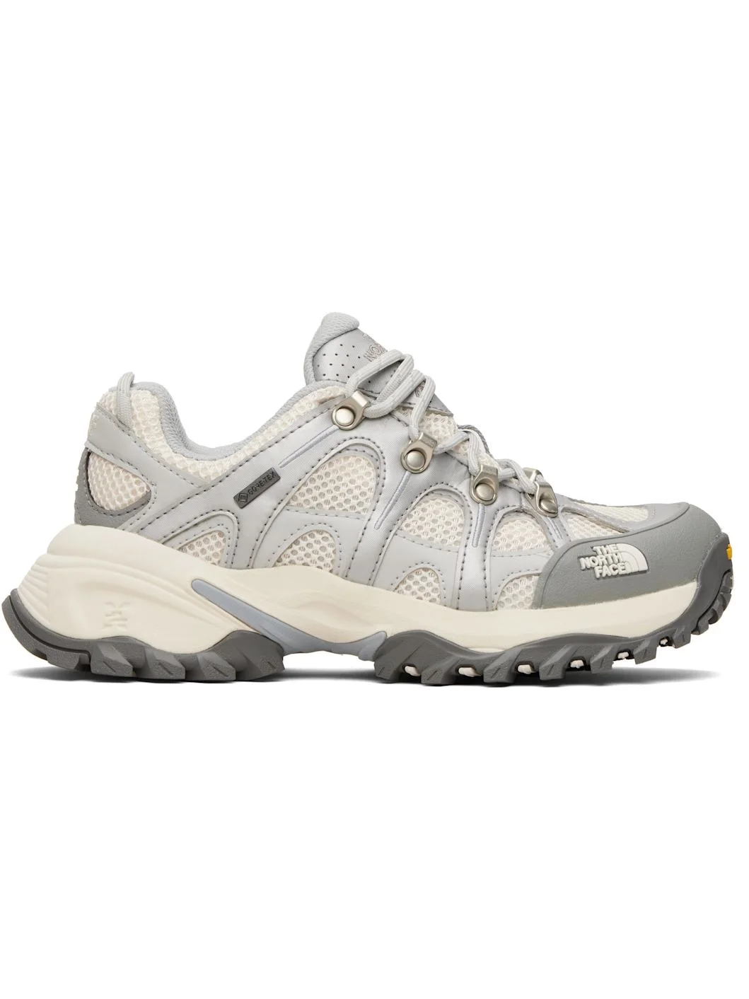 Low-top GORE-TEX® mesh sneakers. · Waterproof and windproof · Faux-leather and rubberized trim throughout · Lace-up closure · Logo embroidered at padded tongue · Padded collar · Pull-loop and embroidered logo at heel collar · Mesh lining · Foam rubber midsole · Vibram® XS Trek rubber sole Supplier color: Frost Grey/White Dune Upper: textile, rubber, synthetic. Sole: rubber. Made in Cambodia 261802F128001