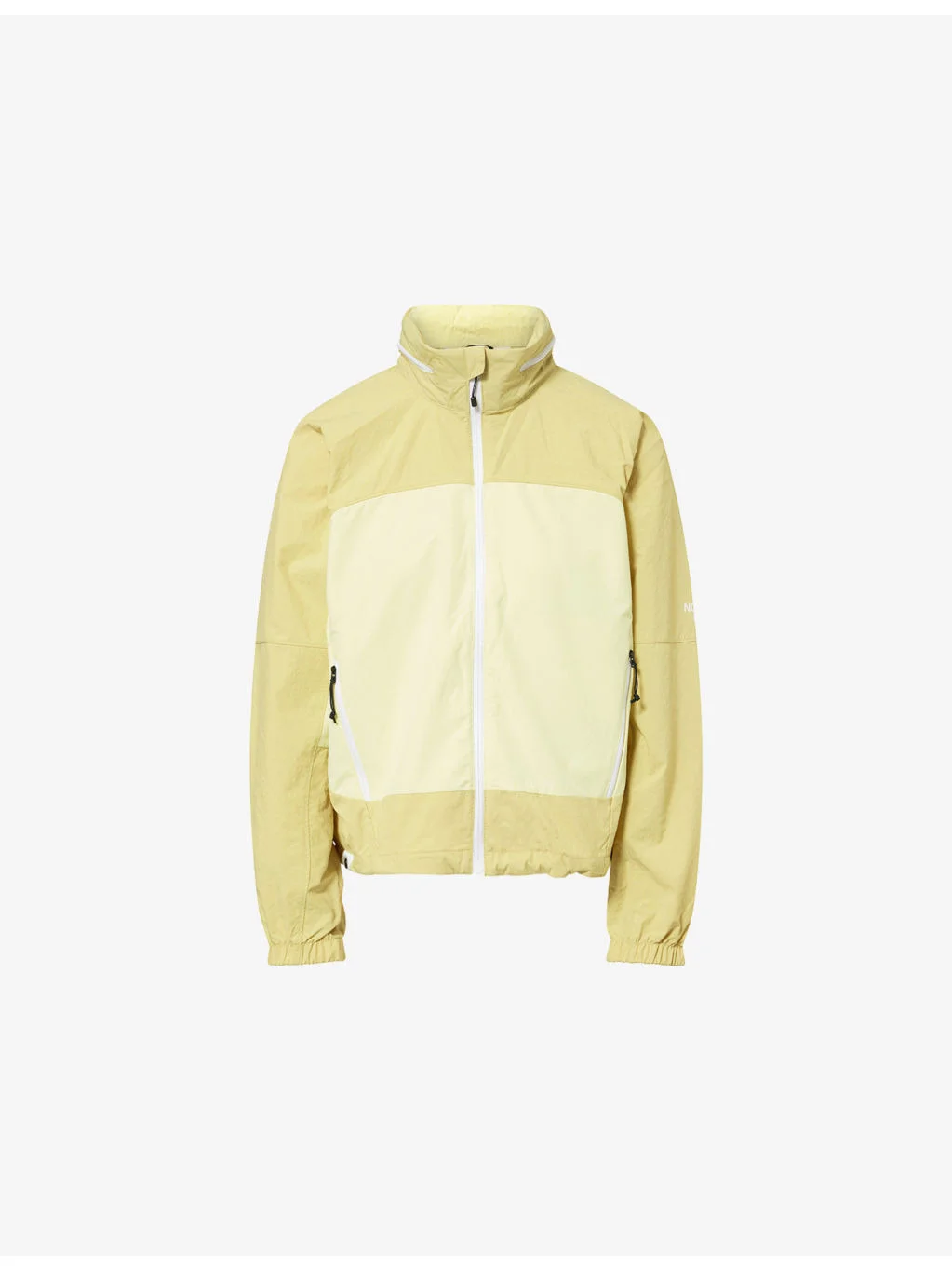 PRODUCT DETAILS - The North Face shell jacket - 94% nylon, 6% elastane - Regular fit, high-neck, fold-away hood, long sleeves, elasticated cuffs, two zip pockets at front, logo print at back and sleeve, contrast panels at sleeves and hem, windproof, breathable, unlined - Machine wash cold - True to size - Model is 5ft 10in/1.78m and wears a size small - Lightweight, non-stretch Ref: R04603258