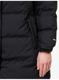 PRODUCT DETAILS - The North Face padded parka coat - 100% polyester - Concealed hoop-and-loop and zip fastenings at front - Regular fit, high-neck, drawstring hood, long sleeves, adjustable cuffs, embroidered logo at chest and back, side zip pockets, all-over padding - Machine wash at 30°C - True to size - Size small: length 38.5in / 98cm - Model is 5ft 10in/1.78m and wears a size small - Midweight, non-stretch Ref: R04510687