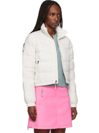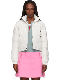 Down-filled and quilted recycled nylon taffeta jacket. · Water-repellent, non-PFC DWR coating · Lightweight · Stand collar · Zip closure · Logo embroidered at chest and back · Zip pockets at front · Bungee-style drawstring at hem · Raglan sleeves · Elasticized cuffs · Fully lined Supplier color: White dune Body: 100% nylon. Fill 1: 100% polyester. Fill 2: 75% recycled down, 25% recycled waterfowl feathers. Lining: 100% nylon. Made in Indonesia 252802F061022