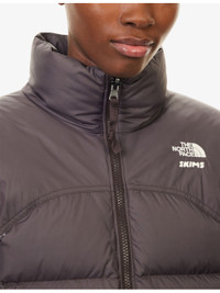 PRODUCT DETAILS - The North Face x SKIMS shell-down jacket - 100% polyamide; filling 80% down, 20% waterfowl feather; lining 100% polyamide - Exposed zip fastening at front - Regular fit, high-neck, long sleeves, hook-and-loop tape elasticated cuffs, two zip pockets at front, brand embroidery at front and back, all-over quilted and padded, fully lined, drawstring hem - Machine wash at 40°C - True to size - Size small: length 22in / 56cm - Model is 5ft 10in/1.78m and wears a size small - Midweight, slight stretch Ref: R04569722