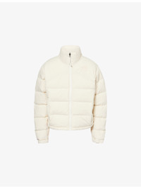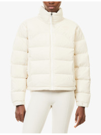 PRODUCT DETAILS - The North Face x SKIMS shell-down jacket - 100% polyamide; filling 90% down, 10% waterfowl feather; lining 100% polyamide - Exposed zip fastening at front - Regular fit, high-neck, long sleeves, hook-and-loop tape elasticated cuffs, two zip pockets at front, brand embroidery at front and back, all-over quilted and padded, fully lined, drawstring hem - Machine wash at 40°C - True to size - Size small: length 22in / 56cm - Model is 5ft 10in/1.78m and wears a size small - Midweight, slight stretch Ref: R04569720