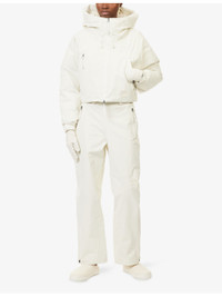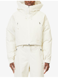 PRODUCT DETAILS - The North Face x SKIMS shell-down jacket - 100% nylon; filling 80% down, 20% waterfowl feather; lining 100% nylon; pocketlining 100% polyester - Concealed zip fastening at front - Relaxed fit, cropped, high-neck, drawstring hood, long sleeves, hook-and-loop tape cuffs, two zip pockets at front, brand embroidery at front and back, all-over padded, drawstring hem - Machine wash at 40°C - True to size - Size small: length 18in / 47cm - Model is 5ft 10in/1.78m and wears a size small - Midweight, non-stretch Ref: R04569795