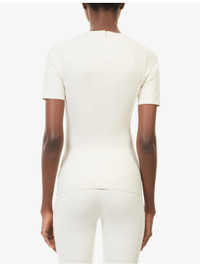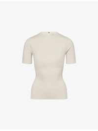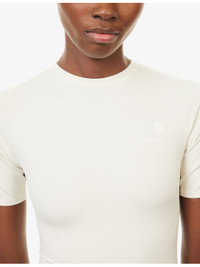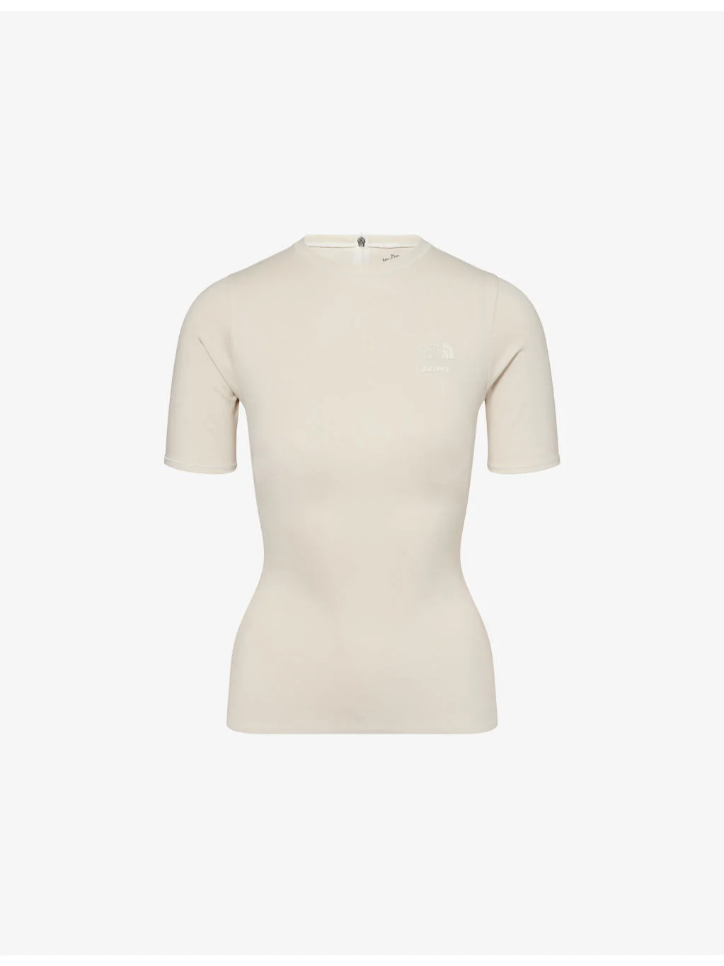 PRODUCT DETAILS - The North Face x SKIMS stretch-woven top - 80% polyester, 20% elastane - Concealed zip fastening at back - Slim fit, round-neck, short sleeves, embossed brand print at front and back, flared hem - Machine wash at 40°C - True to size - Model is 5ft 10in/1.78m and wears a size small - Lightweight, stretchy Ref: R04569799
