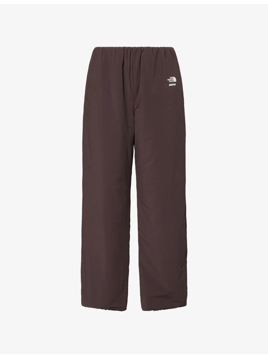 PRODUCT DETAILS - The North Face x SKIMS stretch-woven jogging bottoms - 88% polyamide, 12% elastane; filling 100% polyester - Regular fit, high-rise, straight leg, elasticated waistband, two slip pockets and embossed brand print at front, all-over padded, fully lined, elasticated cuffs - Machine wash at 40°C - True to size - Model is 5ft 10in/1.78m and wears a size small - Midweight, stretchy Ref: R04569810