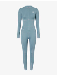 PRODUCT DETAILS - The North Face stretch-woven jumpsuit - 80% polyester, 20% elastane - Concealed zip fastening - Slim fitted, high neck, long sleeves, darting at waistband, rubberised brand logos at chest and back - Machine wash at 30°C - True to size - Model is 5ft 10in/1.78m and wears a size small - Lightweight, stretchy Ref: R04569761