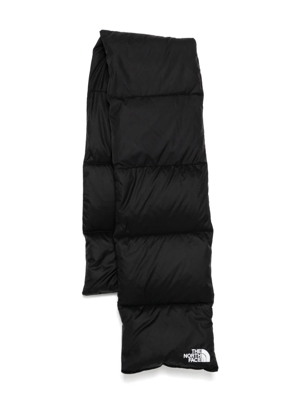 down scarf Highlights - Black - Down-feather filling - Quilted - Padded design - Wraparound style - Applique logo to the front - Internal pocket Imported Composition Lining: Nylon 100% Inner: Polyester 100% Filling: Down 90%, Feather 10% Outer: Nylon 100% SIZE & FIT Measurement LENGTH 51.18 in(130 cm) WIDTH 7.87 in(20 cm)
