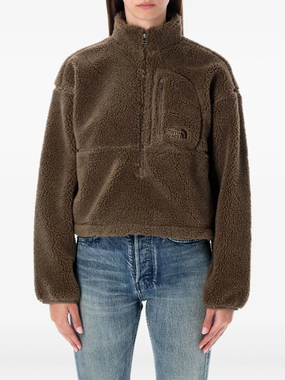 Extreme pile-texture half-zip pullover Highlights - Brown - High neck - Half-zip fastening - Embroidered logo Imported Composition Outer: Recycled Nylon 100%, Recycled Polyester 70%, Polyester 30% Lining: Recycled Polyester 100% Washing instructions Read Manufacturer Guidelines