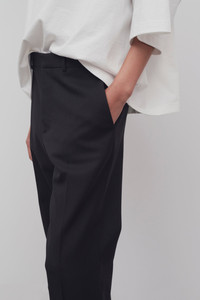 Tailored pant in fluid wool tricotine with pressed front and back creases, side slash pockets, and slightly flared hem. More information - 100% Wool - Made in Italy - Style: 8197W2859BLK