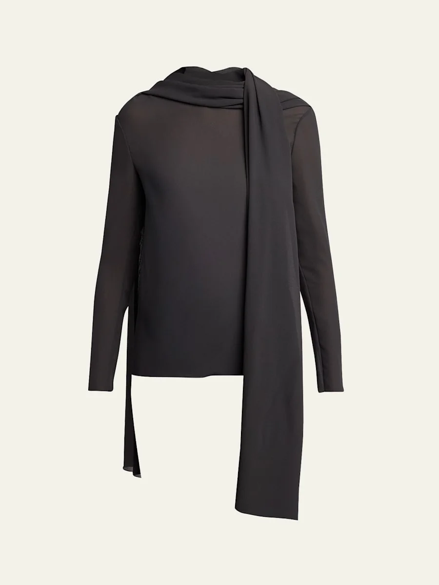 Alenora Scarf-Neck Silk Long-Sleeve Top