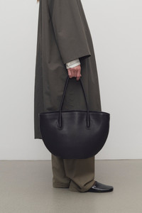 Geometric tote bag in polished saddle leather with tubular handles, flat base, and hand-stitched construction. More information - 100% Calfskin Leather - Lined in 100% Lambskin Leather - Made in Italy - Style: W1856L72BDWS