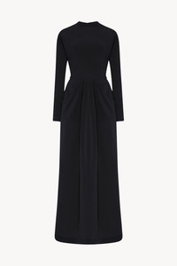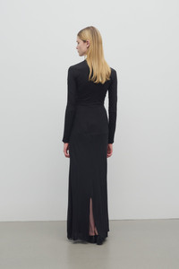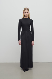 Ankle-length column dress in ultra-soft jersey with draped center front box pleat, center back vent, and back zip closure. More information - 88% Polyamide, 12% Elastane - Made in Italy - Style: 8625K209BLK