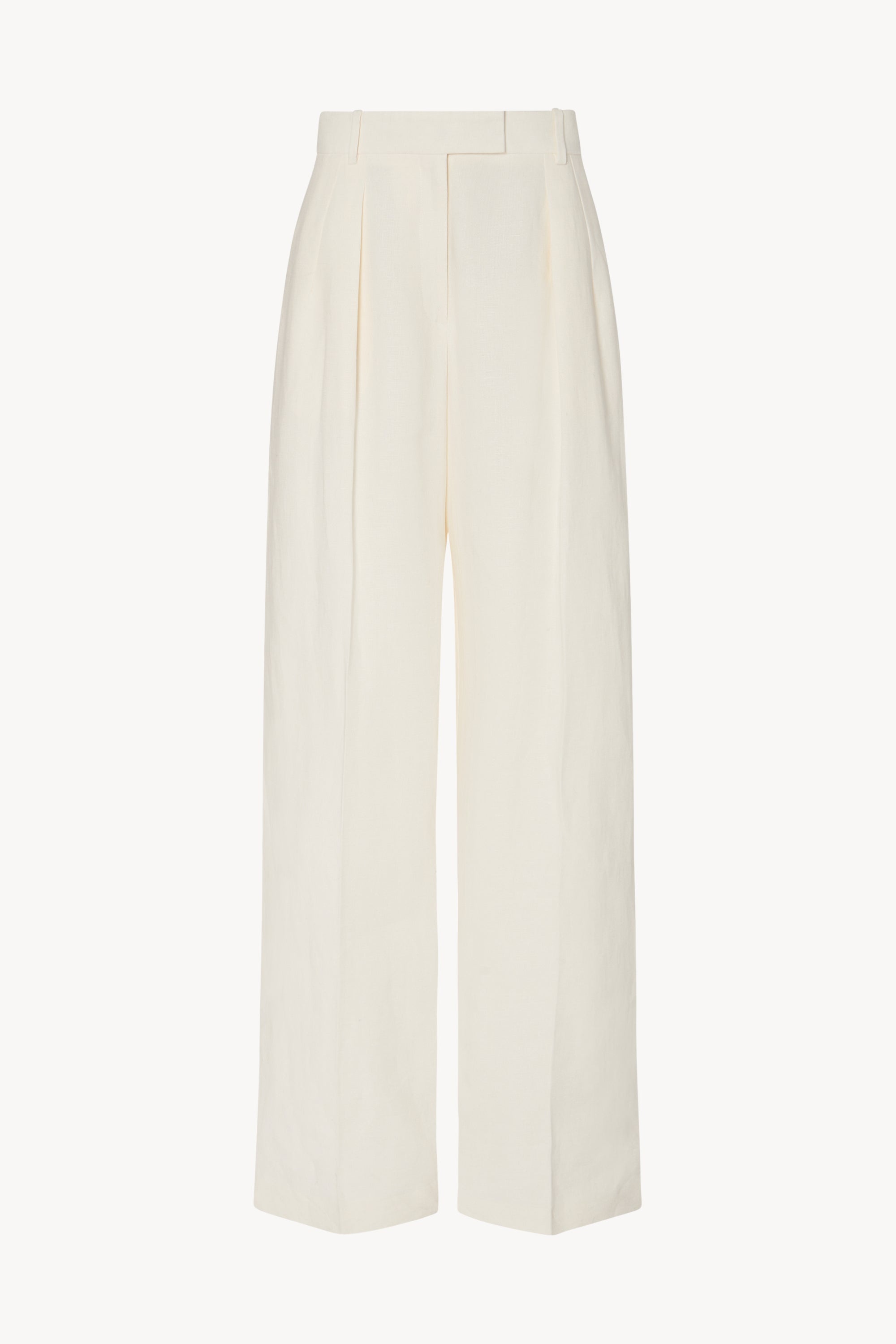 High-waisted trouser in fluid compact linen with relaxed baggy fit, straight wide leg with front pressed crease, and tailored waistband. More information - 100% Linen - Made in Italy - Style: 7768W2929OWH