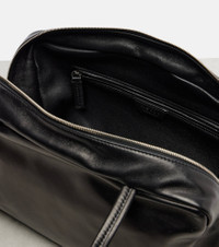 A deep affection for refined and timeless fashion influences The Row's dedication to craftsmanship and quality. The Astra shoulder bag is crafted from supple leather and features a bowling-inspired silhouette with a flat base, long flat handles, and two-way zipped closure. Product Details - Material: calf leather - Lining: leather - Made in Italy - Color: black - Designer color name: Black Ans - Shoulder straps - Internal details: internal slot pocket, single compartment, internal zipped pocket - Closure: two-way zipped top - Includes: dust bag - Item number: P01088339 Size & Fit - Height 17cm-6.5" - Width 29cm-11.5" - Depth 10,5cm-4" - Length of handles 58cm-23"