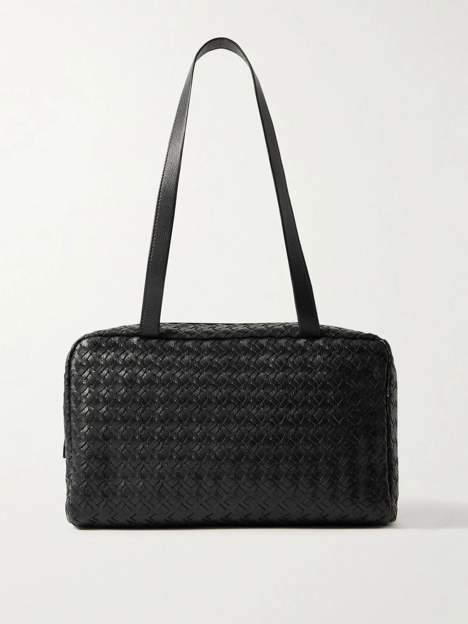 Rooted in understated craftsmanship, The Row's 'Astra' bag is woven from strips of leather for beautiful texture and durability. Taking cues from classic vanity cases, it has a gently structured shape and long handles that sit over the shoulder. There's enough space inside for your phone, wallet and sunglasses. Details & Care - Black leather (Goat) - Top handles - Internal zipped pocket - Unlined - Two-way zip fastening