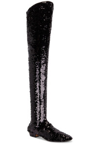 Details - Sequined upper with leather sole - Made in Italy - Back zipper closure - Leather footbed and lining - Almond toe - Block heel - Approx 25mm/ 1 inch heel - Approx 647.7mm/ 25.5 inch shaft - Shaft measures approx 68 cm in circumference - Our Style No. TERX-WZ427 - Manufacturer Style No. F1528-SE