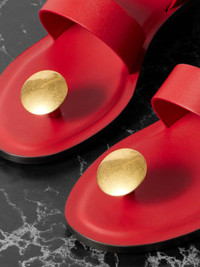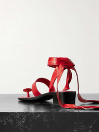 EDITORS'NOTES The Row's 'Band' sandals are a striking blend of minimalist design and bold detail. They're made from vibrant red leather with ties that wrap elegantly around the ankle and have a sculptural gold-tone toe post. The low block heels ensure comfort. SIZE & FIT - Fits true to size, take your normal size - Italian sizing DETAILS & CARE - Heel measures approximately 40mm/ 1.5 inches - Red leather (Calf) - Ties at ankle