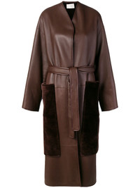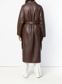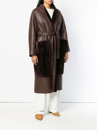 belted midi coat Stay stylishly warm this AW18 in this coat from The Row. Crafted from dark brown lambskin and lamb fur, this coat is a versatile piece that can be worn day to night and features a belted waist, long sleeves, a fur trim, oversized side pockets and a mid-length. Made in United States Composition Outer: Lamb Skin 100% Lining: Lamb Fur 100% Washing instructions Specialist Cleaning