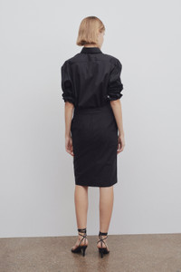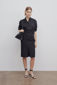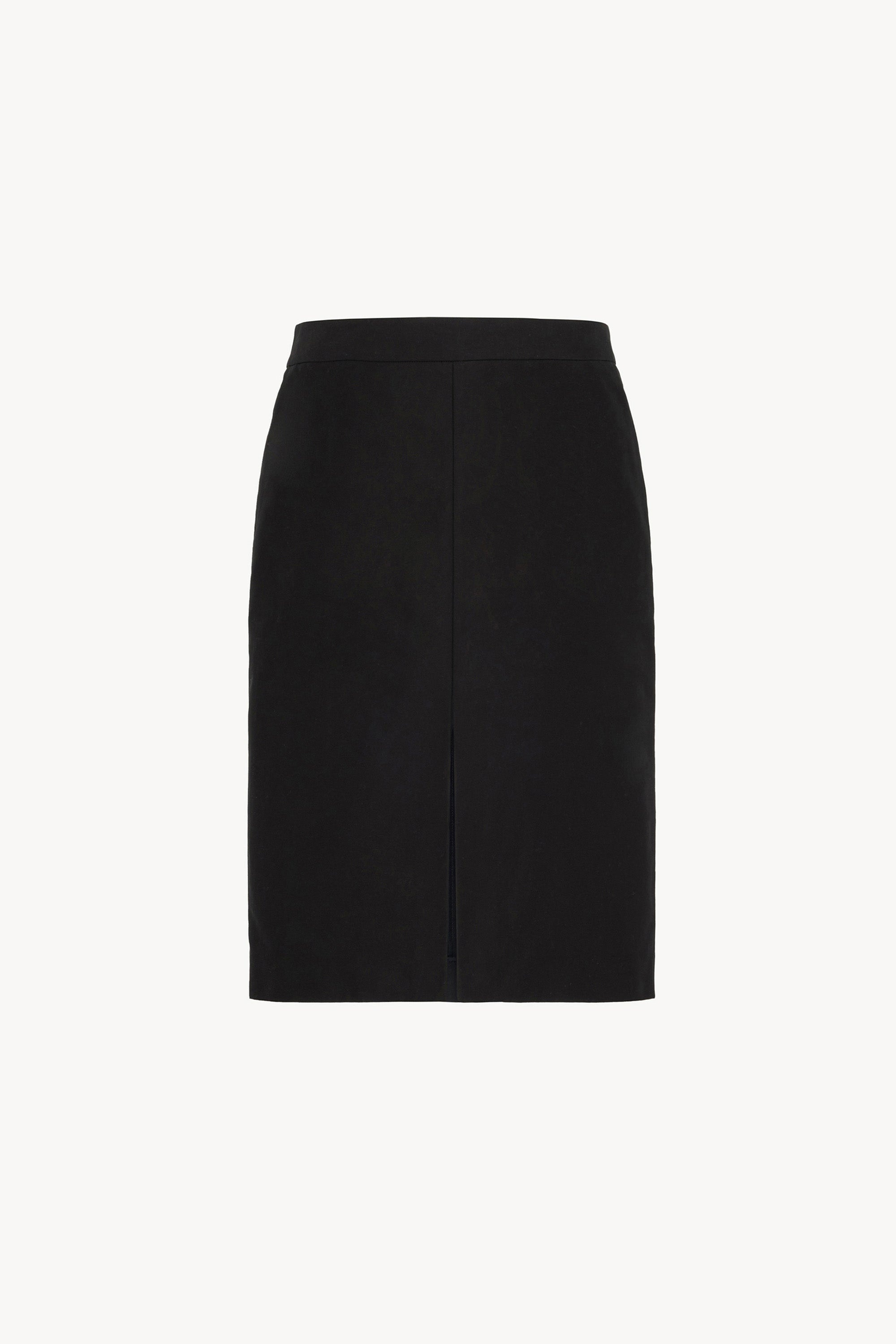 Midi length straight skirt in cashmere cotton drill with side seam pockets and front slit detail.More information - - 95% Cotton, 4% Cashmere, 1% Elastane - - Lined in 100% Silk - - Made in Italy - - Style: 6943W1699BLK