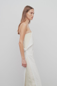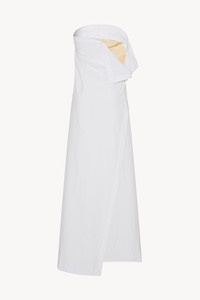 Full-length strapless dress in vintage cotton with column silhouette, draped overlay at top, and structured, darted underdress. More information - 100% Cotton - Silk Lining - Made in Italy - Style: 7999W2517OWH
