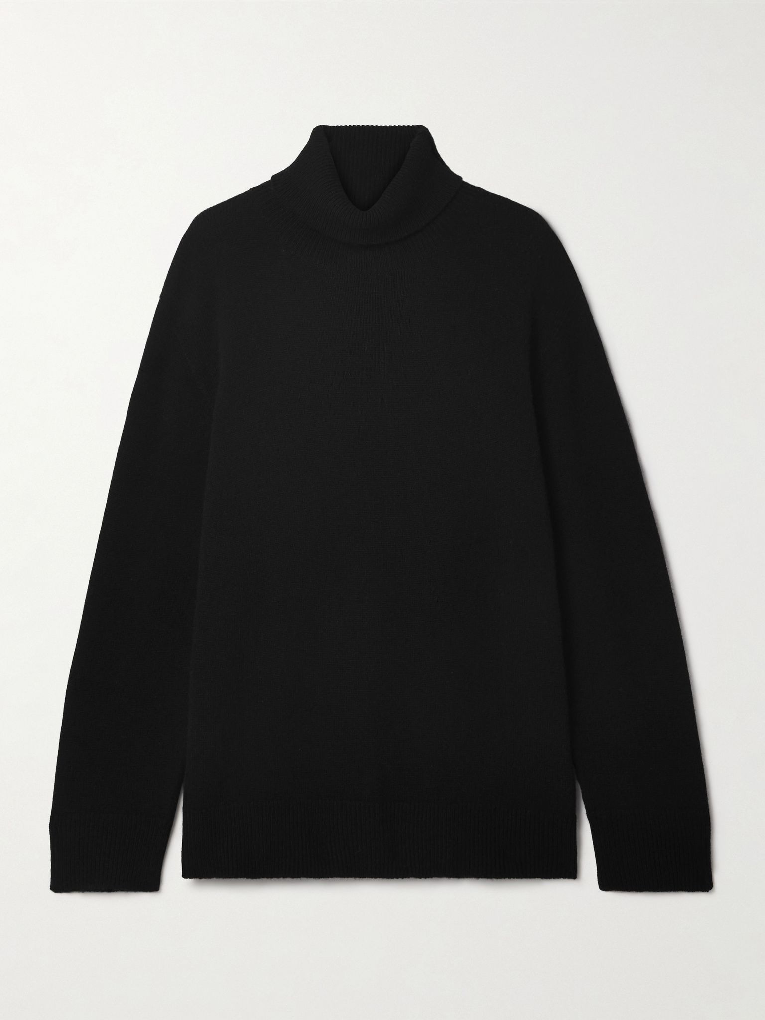 A classic style you'll wear on repeat for years to come, The Row's ‘Hepny’ sweater has been knitted in Italy from luxurious cashmere that's soft to the touch. It's designed in the brand’s signature relaxed fit and has ribbed detailing along the trims and folded turtleneck. Leave yours loose over tailoring or worn half-tucked into midi skirts. Details & Care - Black cashmere - Slips on - 100% cashmere