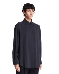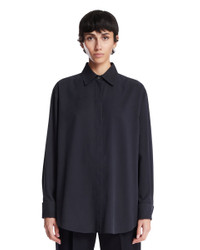 The Row Blue Penrose Silk Shirt. Blue silk, classic collar, long sleeves, concealed front button closure. Rounded hem, buttoned cuffs, relaxed fit. Anis is 178 cm and she is wearing size 2. DETAILS Model: 10383W2861DRN Composition: 100% Silk Made in: ITALY Season: FW25-26