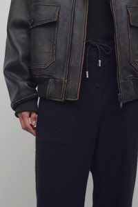 High-waisted, pull-on pant in fluid cashmere flannel with relaxed fit, snap buttons with drawstring waistband, and side seam pockets. More information - 95% Cashmere, 4% Nylon, 1% Elastane - Made in Italy - Style: 8225W3244DRN