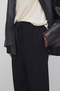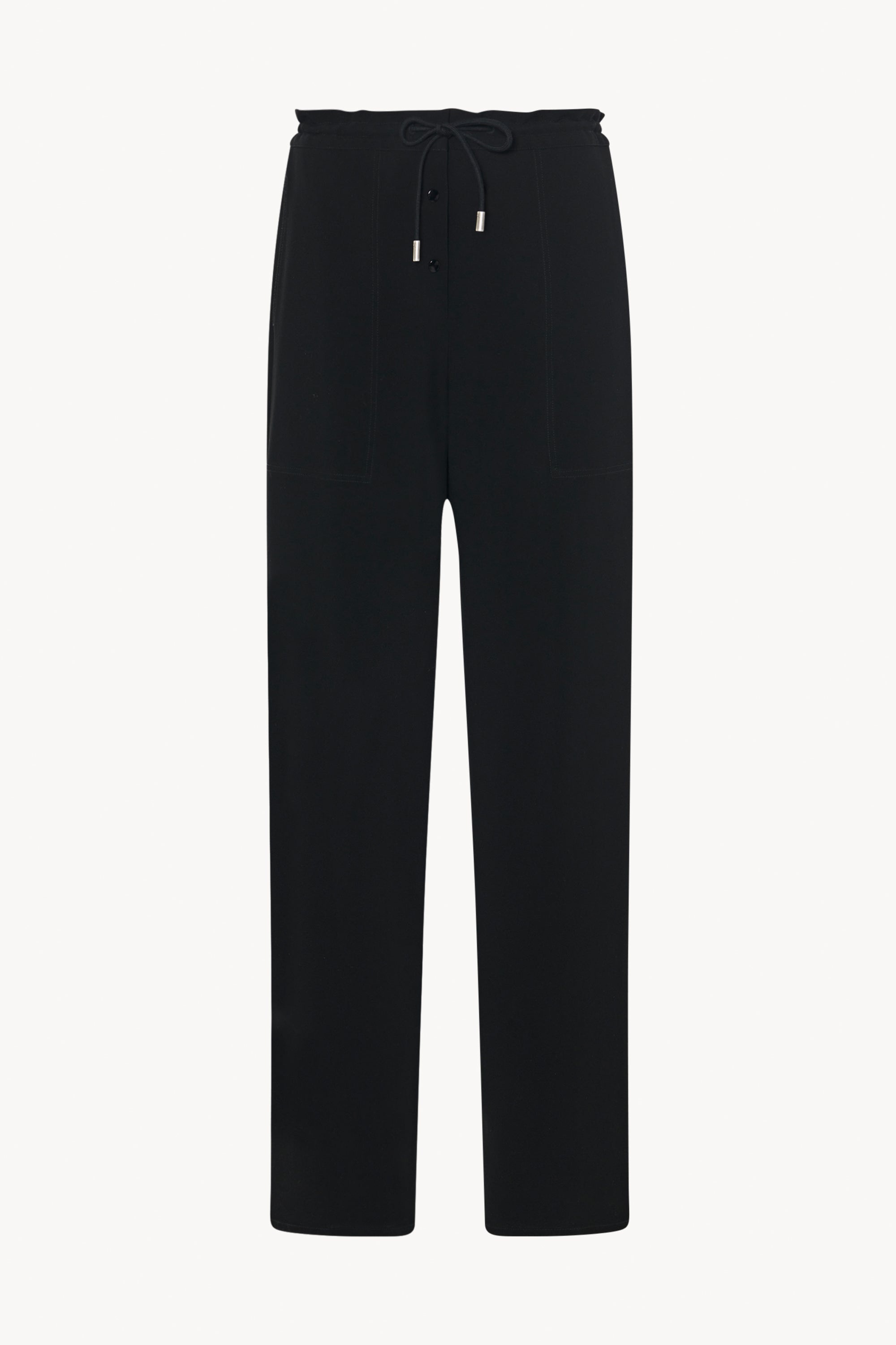 High-waisted, pull-on pant in fluid wool crepe with relaxed fit, snap buttons with drawstring waistband, and side seam pockets. More information - 80% Wool, 20% Polyamide - Made in Italy - Style: 8225W3179BLK